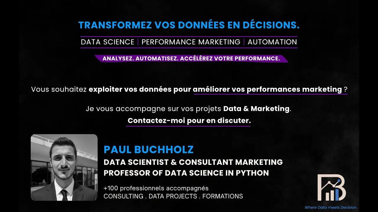 Teaching Python for digital marketing (data analysis and data science), AI culture, various BI tools, Big Data.